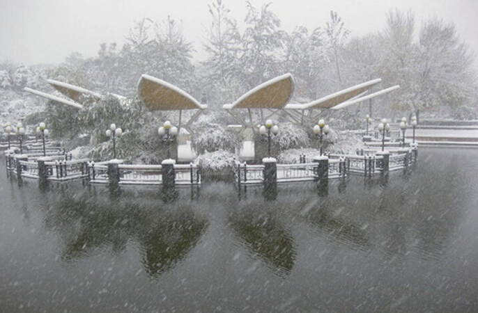 清一色,连成行,唯雪茫茫、匆匆忙, 心随雪去,几何茫茫。